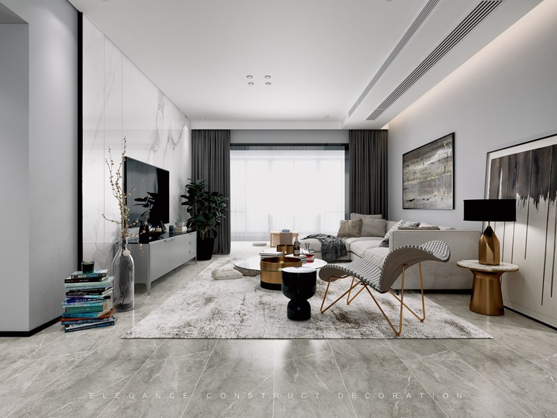 客廳整體給人一種立體的感覺(jué),純凈色彩的運(yùn)用,靈活而大膽,使空間整體上多了幾分時(shí)尚的元素。大大的落地窗映射著蔚藍(lán)的天空與美麗的大海,給人一種夢(mèng)幻的色彩。沙發(fā)、地毯、燈飾、壁畫、 背景墻等軟裝搭配結(jié)合簡(jiǎn)單的工藝品,給人帶來(lái)不受拘束、前衛(wèi)而又時(shí)尚的感覺(jué)。