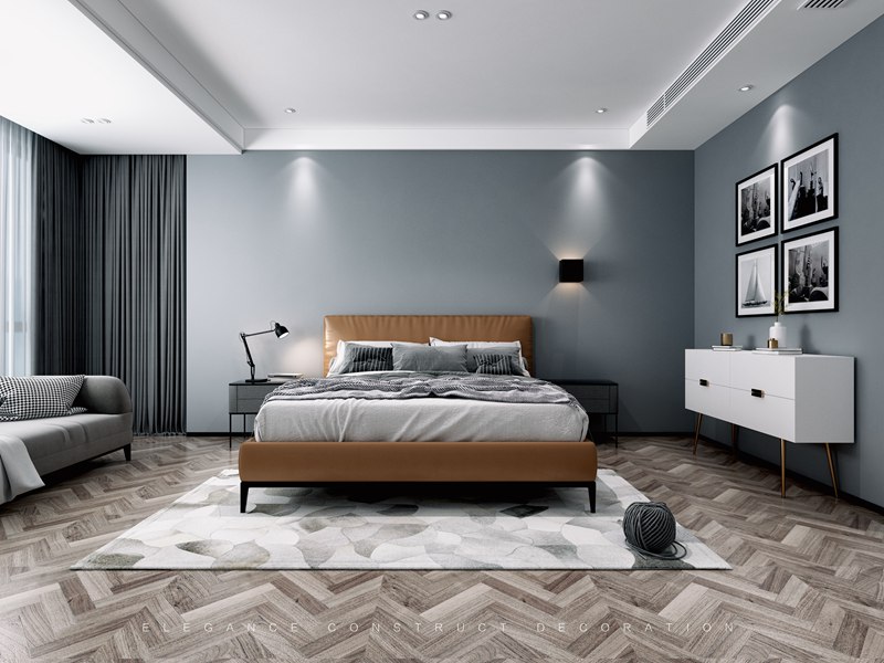 一張床、一個(gè)床頭柜、一盞燈,一架鋼琴加上背景墻上風(fēng)景畫,沒(méi)有過(guò)多多余的裝飾,卻讓臥室顯得相當(dāng)?shù)氖孢m溫馨、生動(dòng)而自然。
