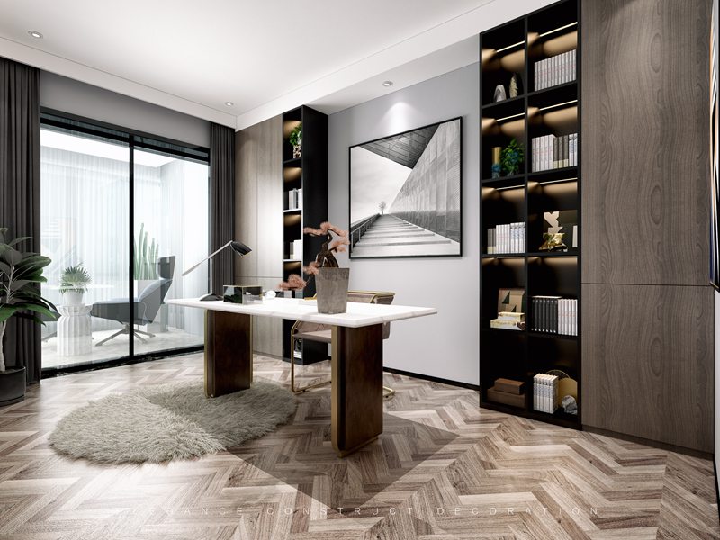 書房、浴室等的設(shè)計(jì)也是一切從實(shí)用的角度出發(fā),延伸更多空間的實(shí)用性能、摒棄多余的裝飾,簡(jiǎn)單簡(jiǎn)約、悠然淡雅。別有一番陶淵明筆下的“采菊東籬下,悠然見南山的風(fēng)情。”