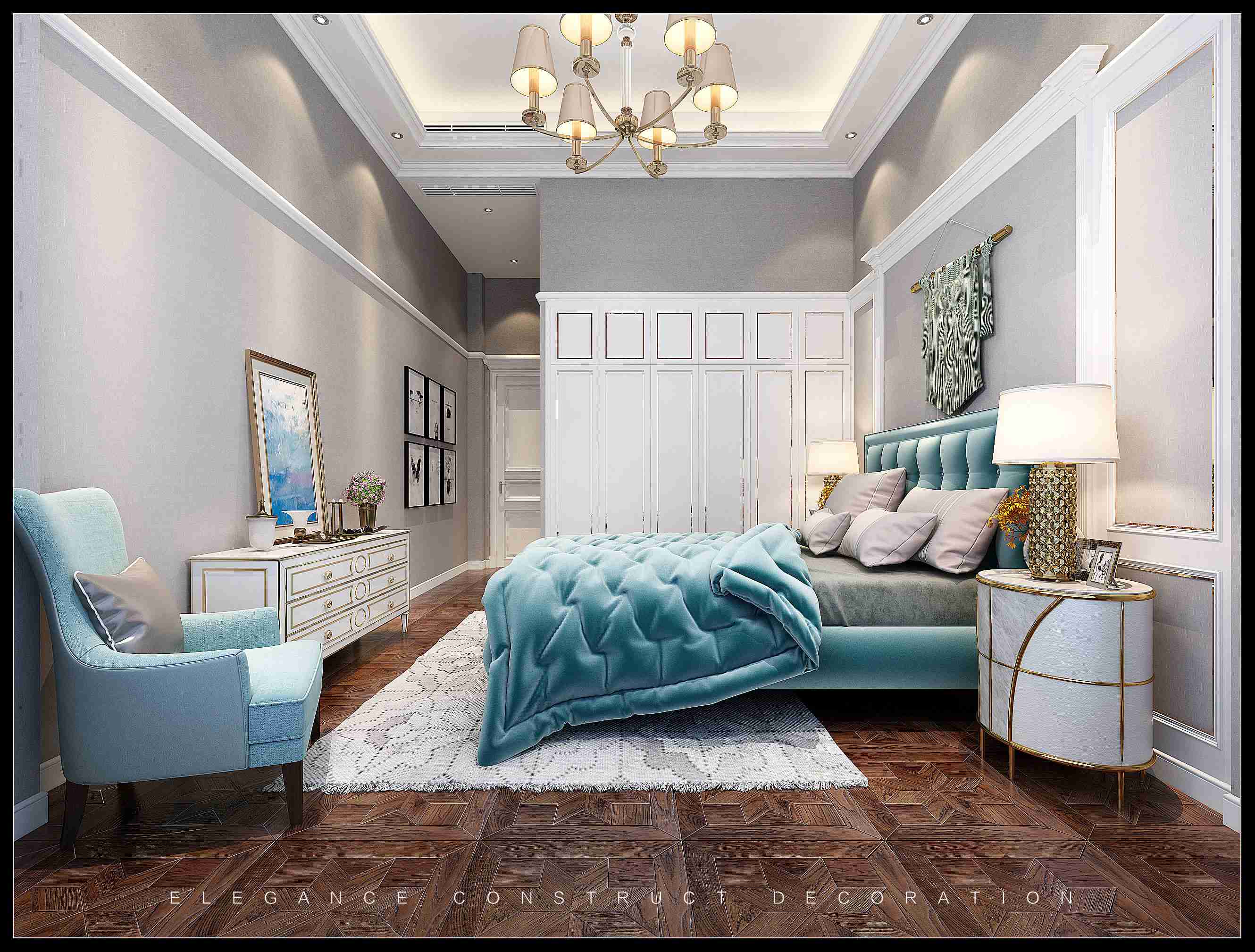 主臥室:整體空間色彩主要采用藍(lán)色與淺灰色,主要體現(xiàn)在背景墻、地面、窗簾等主要軟裝家具上,營(yíng)造一種安逸舒適、優(yōu)雅氛圍,后加一點(diǎn)點(diǎn)暖黃色,將整個(gè)空間的色彩點(diǎn)亮,空間一下子就賦予了層次感,讓主人休息更貼心。