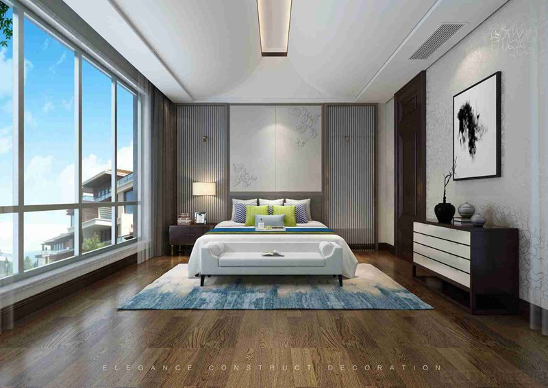 與傳統(tǒng)的書房不同,在書房的設(shè)計(jì)上,并沒有做門而是直接做了個(gè)如意弧屏風(fēng),形成一個(gè)開放式景象。這個(gè)空間不僅僅是一個(gè)書房,更多的是想營(yíng)造一種意境。抬眼入目,千里江山自然風(fēng)貌的中國(guó)山水畫表現(xiàn)無限的空間感。主人環(huán)坐其中,背靠山脈上有極致栩栩如生的飛鳥,無論做生意還是當(dāng)官都會(huì)順風(fēng)順?biāo)?/span>