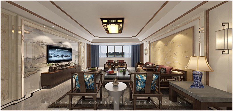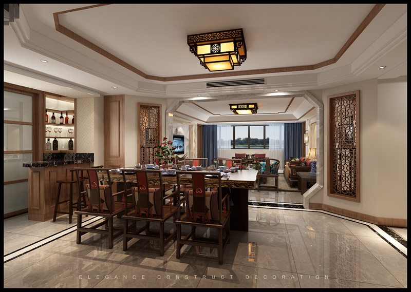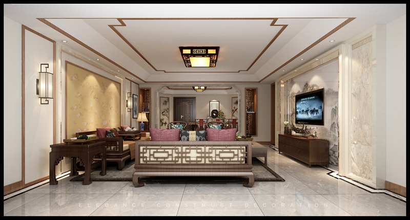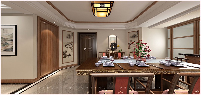 業(yè)主三口之家,風(fēng)格定義為新中式,地面是大理石瓷磚,墻面壁布,配合實(shí)木線條,實(shí)木雕刻,巖石雕刻等材質(zhì)。家具選用大紅酸枝材質(zhì),色澤自然,紋理清晰,典雅高貴。整體設(shè)計(jì)既保留了傳統(tǒng)中式的莊重與優(yōu)雅,又追求靈動(dòng)格調(diào)素雅,體現(xiàn)了家居主人較高的審美情趣與社會(huì)地位。