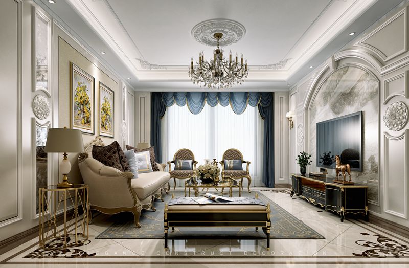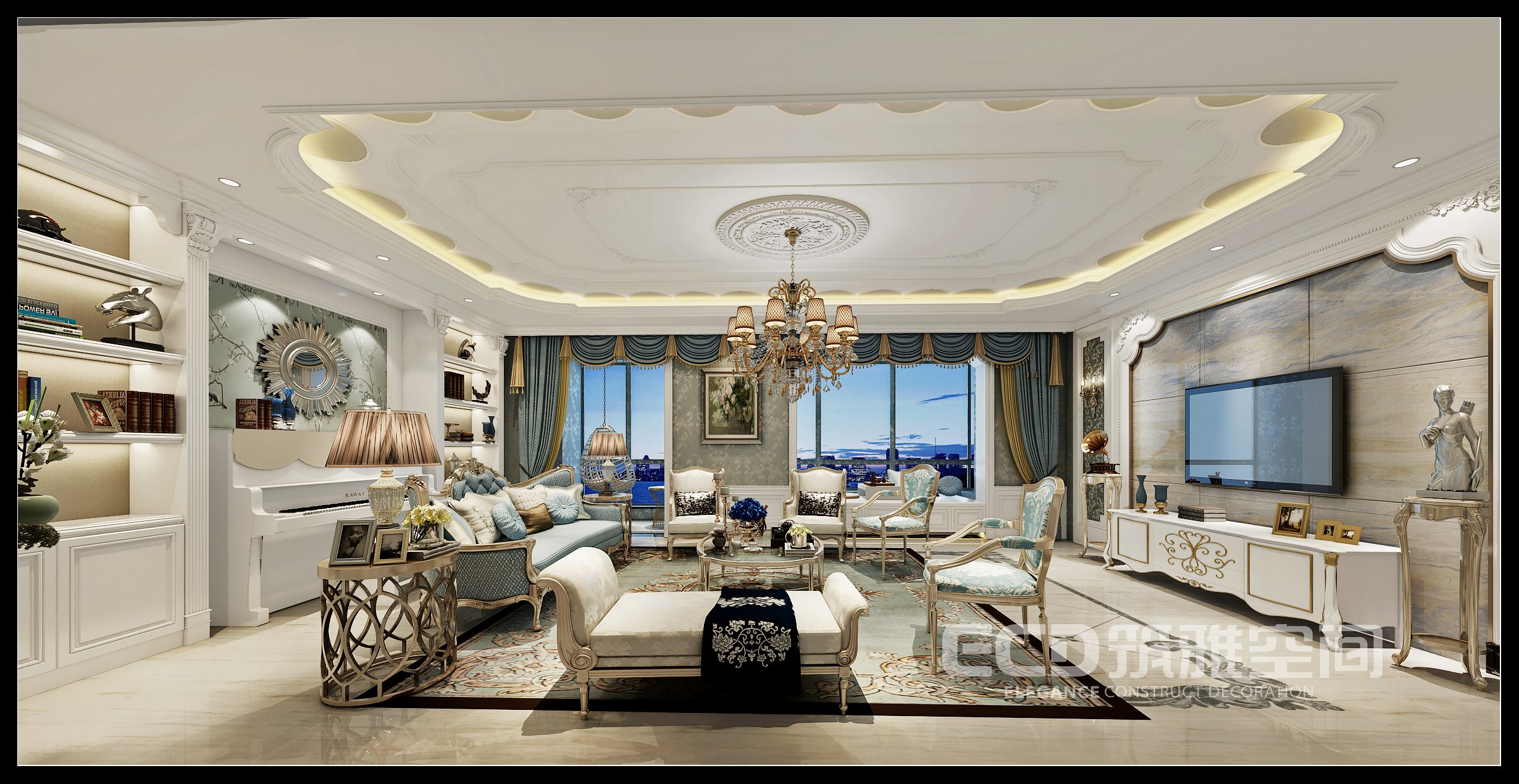 凸顯儀式感和尊貴感的超長雙橫廳空間,奢華的尺度是本案最為重要的空間亮點。捕捉到這個優(yōu)勢,設計師強調中式審美特點之一:對稱性。以過道為中軸,客廳、辦公區(qū)、餐廳、西式吧臺安然落座,確保整體視野廣闊,空間方寸毫不浪費且功能極為融合。