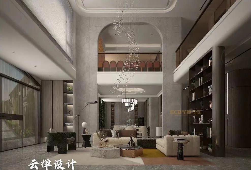 挑高的客廳搭配旋轉(zhuǎn)樓梯,輕奢、高級(jí)在這里展露無(wú)疑。