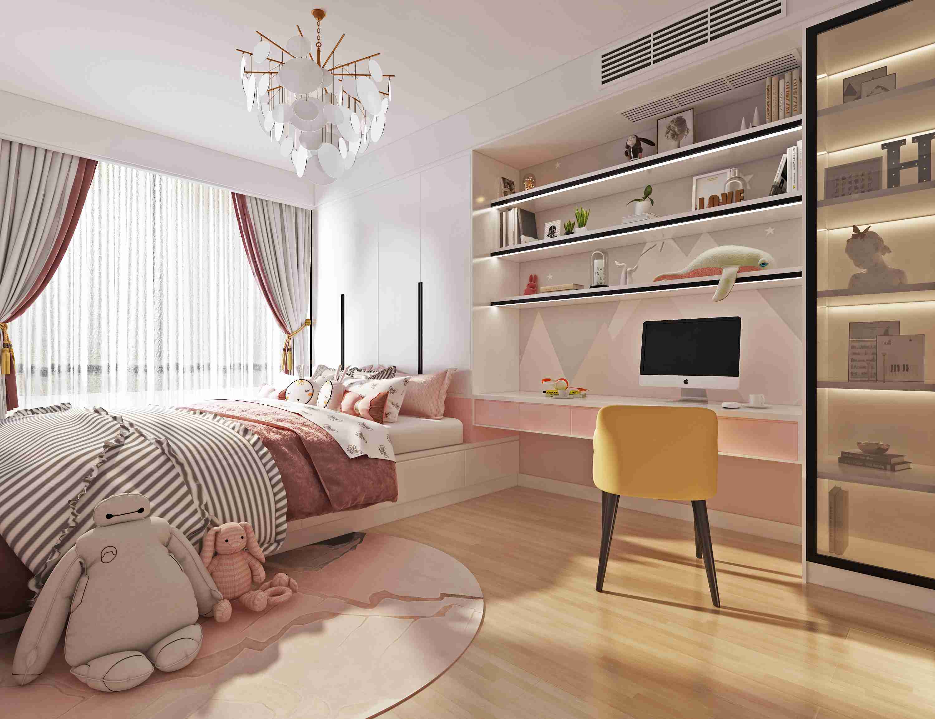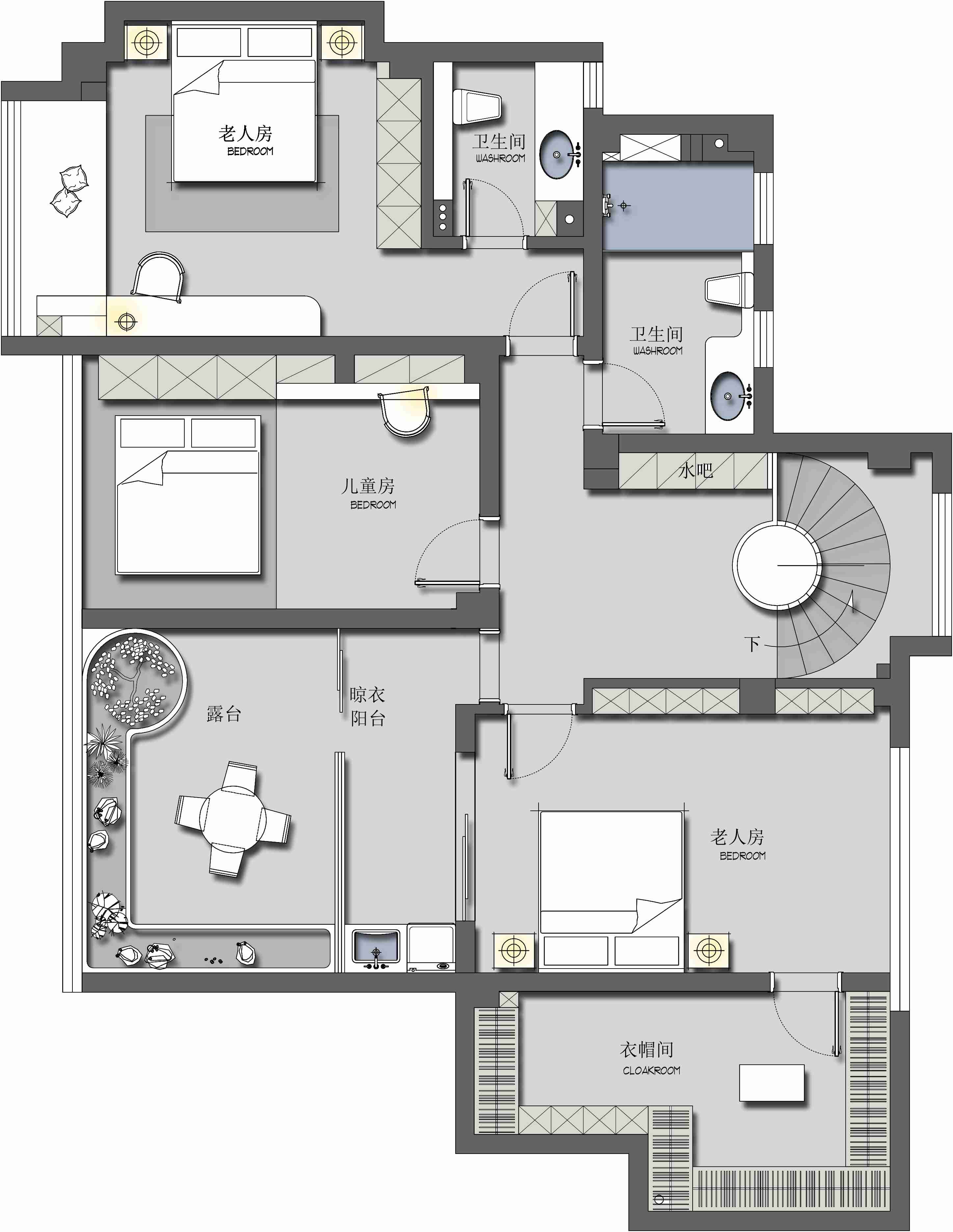 樓梯位置從陽面改到了北側(cè),最大程度利用陽面做設(shè)計(jì),一樓有主臥室和書房,二樓兒童房完全利用了陽面兒的陽光,特別溫暖,把樓梯移到北側(cè)比原來也寬敞很多,做了一個(gè)旋轉(zhuǎn)樓梯,不但就是說,形式上就很新穎,然后嗯,樓梯的就是功能,利用也很方便,就是從尺度啊尺度感,既滿足了一家人的生活方便又完美化解了原來的樓梯又窄又陡又小的問題。