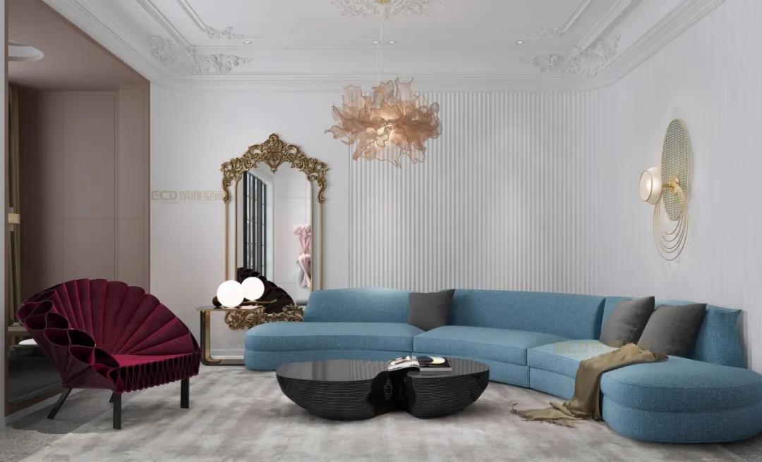 This is a Wangfu courtyard villa project, the design of the case in the post-modern style to find a balance between the refreshing feeling and French lines, looking forward to mix and match the little surprise brought about.In terms of color and material, the designer subverts the conventional color scheme and materials, skillfully uses contrasting colors and new materials, and works of art to add a touch of color and style to the space, making the French light romantic style more romantic.