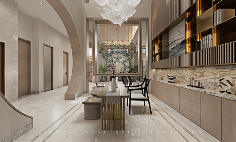 其實,所謂獨特,只能與眾不同。如果說點、線是幾何的專業(yè)語言,那么對于空間來說,設計師希望用更多多元開放的眼光、把國際東方的底蘊展現(xiàn)出來。本案運用現(xiàn)代主調結合中國東方元素的原始意境,提煉出“國際東方”這個家的設計主題。