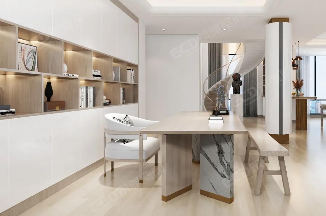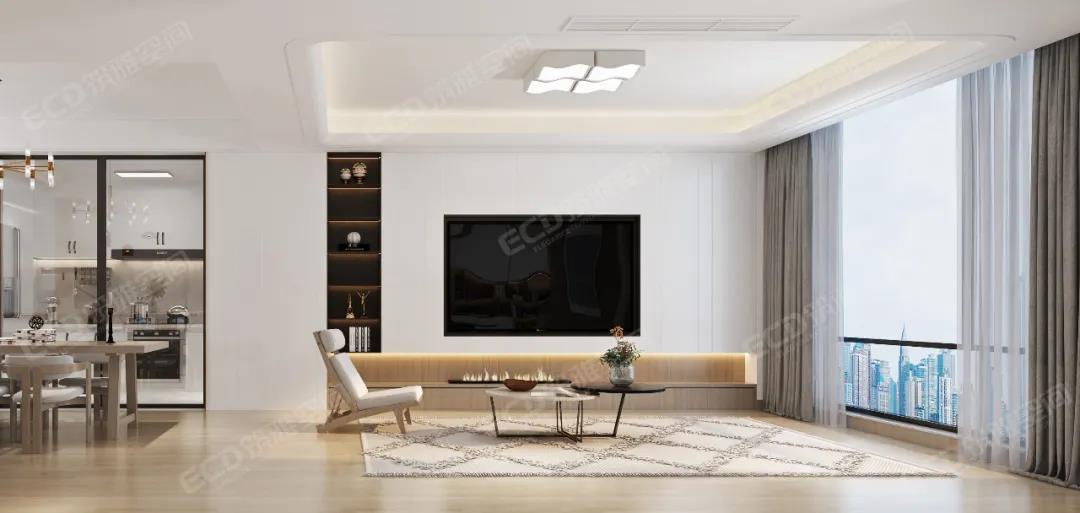 白色與木色搭配的主色調(diào),借助自然光影的變化,渲染出流動斑駁而透徹的感受。設(shè)計化繁為簡,整體格調(diào)簡奢中縈繞著溫馨雅韻,半開放式收納柜,更顯格調(diào),視覺上不顯突兀,營造出如舒適愜意的生活體驗。