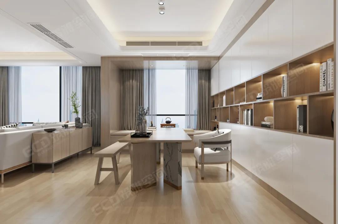 整體空間在顏色的搭配上,采用淺暖色的基調(diào),營造出簡約溫和的情調(diào),通鋪的木地板使得整體空間產(chǎn)生一種沉穩(wěn)、有包容力的溫暖,從而散發(fā)出無限的魅力。在循序漸進的關(guān)系中,白色與木色在空間中交織成韻,暈染出時光與藝術(shù)的韻味。