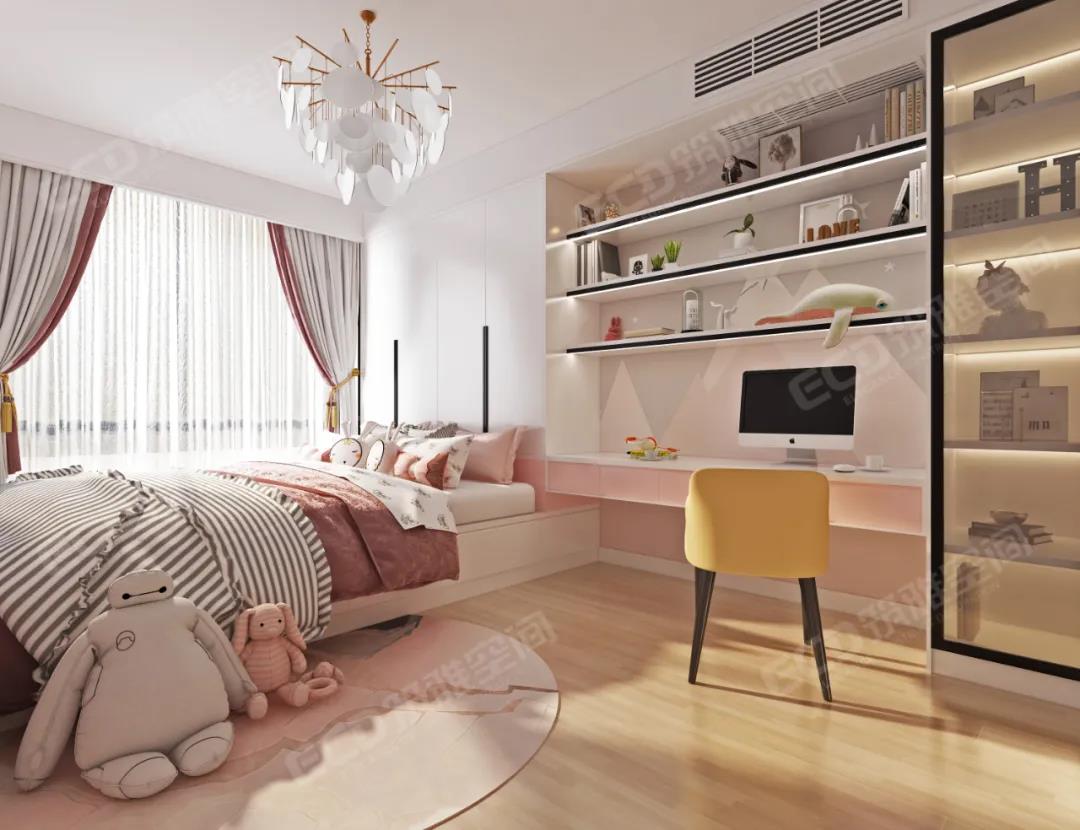 女孩房以淡粉色為基底,在色彩上,大量運用粉白色,運用簡潔線條來勾勒出空間細節(jié),為空間締造出豐富的層次感,粉色的空間讓小公主的成長之路變得更加溫馨具象,整體彰顯了柔和靈動的格調(diào)。