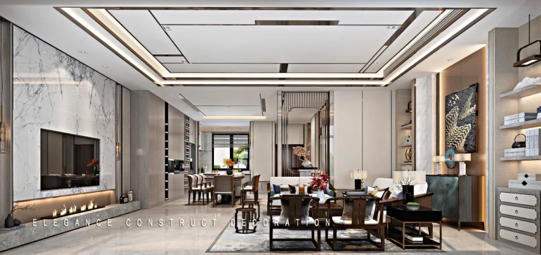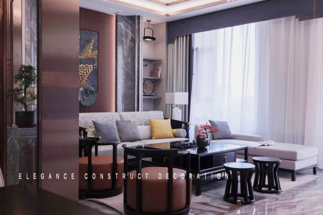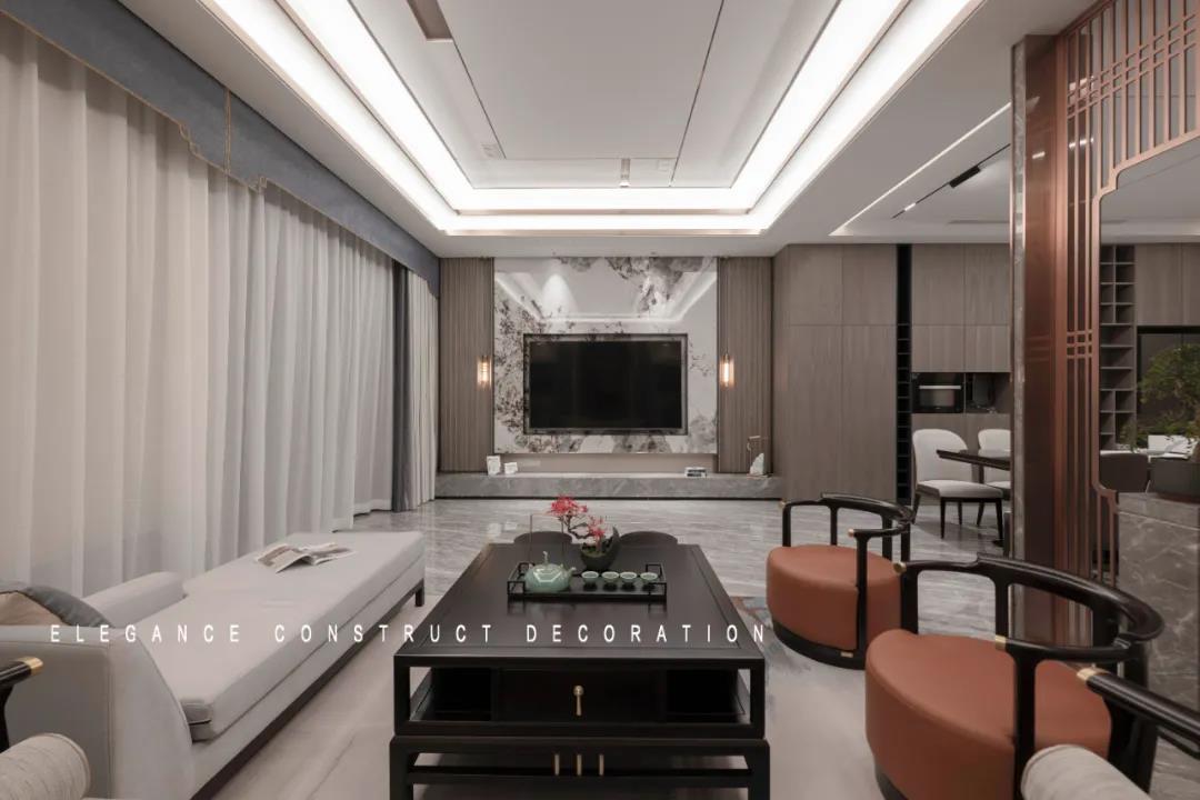 整體設(shè)計(jì)以現(xiàn)代中式風(fēng)格為主軸,去除了傳統(tǒng)中式的厚重與繁復(fù),將形式和標(biāo)志性設(shè)計(jì)簡(jiǎn)化,于現(xiàn)代感中保留了典雅的韻味。