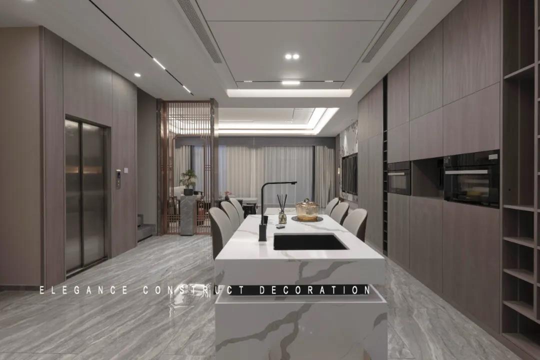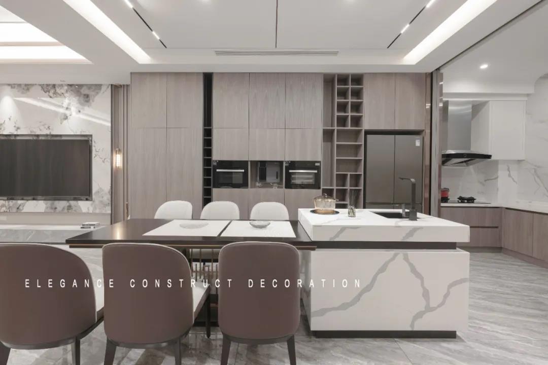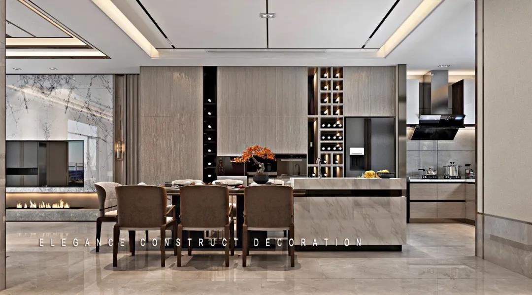 采用爵士白巖板餐桌和皮餐椅的搭配,分割的造型設(shè)計(jì),賦予空間更豐富的層次,與空間對(duì)話,與時(shí)間共舞,創(chuàng)造融合共生的氛圍。