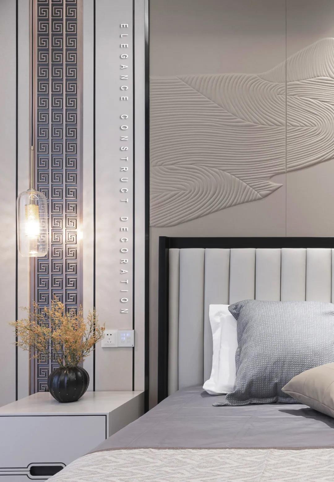 極具特色的浮雕床頭軟包背景,風(fēng)格上與全屋設(shè)計(jì)統(tǒng)一,回形紋的對(duì)稱造型設(shè)計(jì),讓空間更顯穩(wěn)重,大氣。