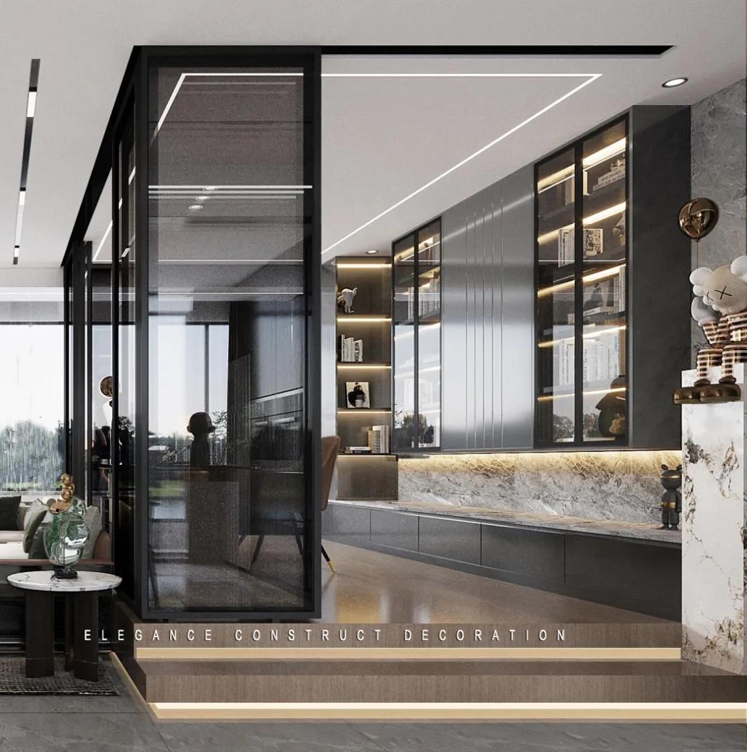 在設(shè)計時,王老師根據(jù)各個區(qū)間的可能性,對空間動線進行重新規(guī)劃,追求一種居住舒適度與生活藝術(shù)的合理表達。公共區(qū)域圍繞玄關(guān)-餐廳-廚房-客廳-書房進行展開,采用開放式的設(shè)計布局,增強空間的流動性,打造出讓人一目了然的流動空間。