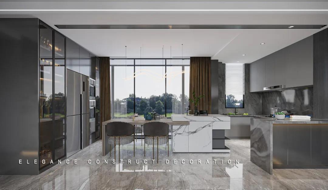 U形的廚房和餐桌一體化島臺設(shè)計,舒適的動線和寬敞的操作空間,滿足一家人對美食的全部幻想。大面積的窗戶,保證最大通風采光度的同時,又能為居住者帶來更好的生活體驗。