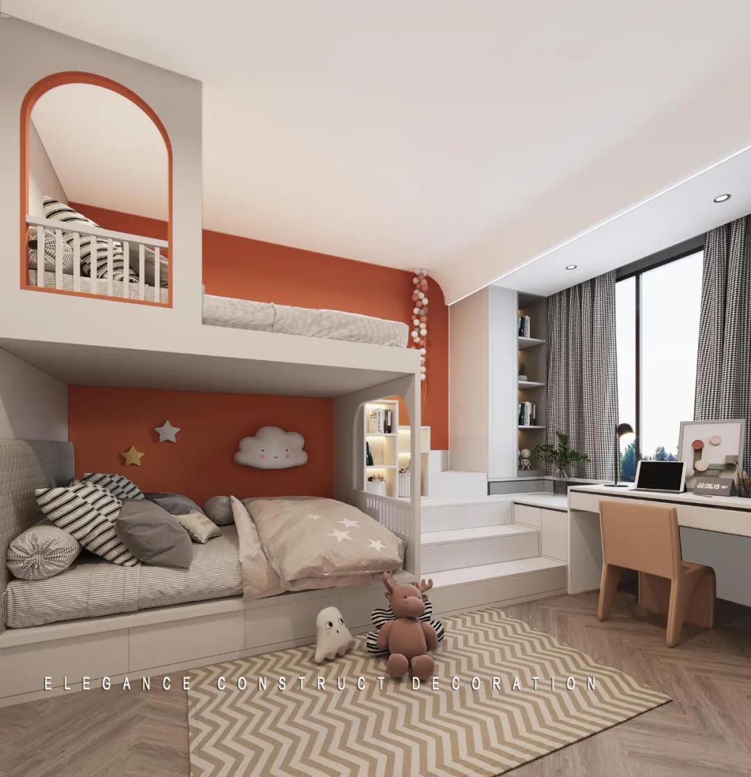 小孩子的想法總是天馬行空,兒童房的設(shè)計自然也是趣味十足,圓拱門的設(shè)計妙趣橫生,星星云朵等的加入更靜謐安然,在這里,孩子的每一次成長,都是這個家中最寶貴的珍藏。