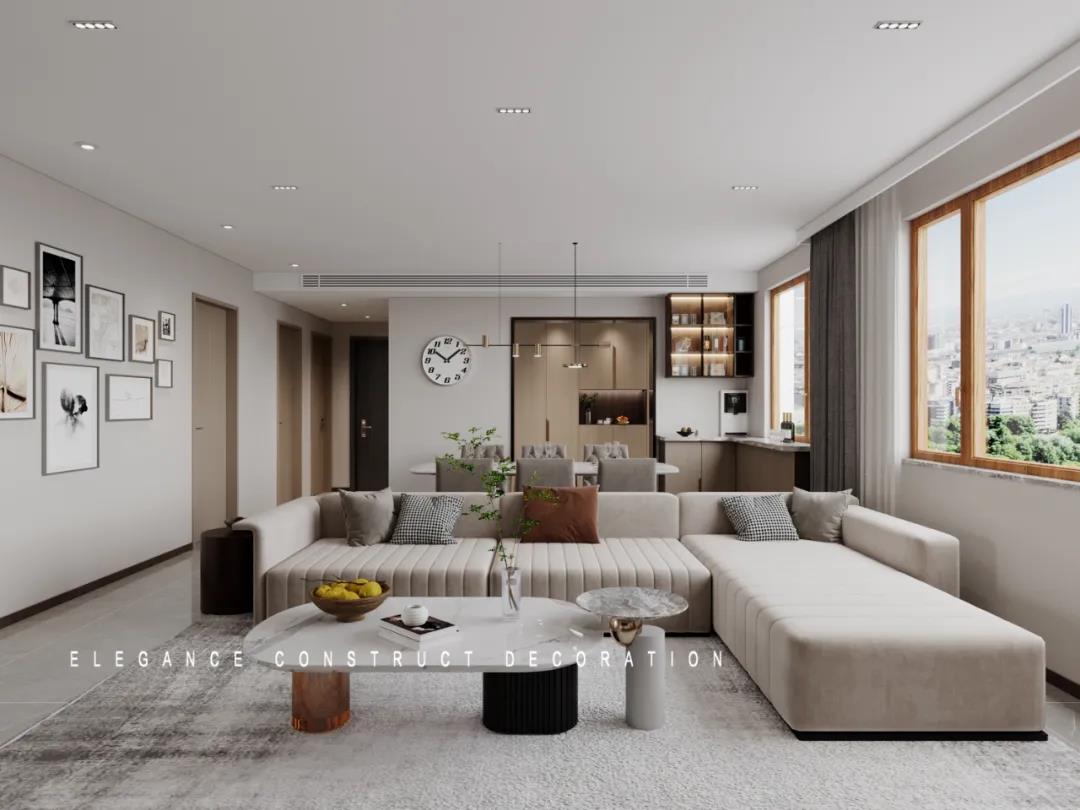 客廳陽臺采用大面積落地玻璃,打造一方休憩與會客的藝術港灣。在陽光的照耀下,使客廳采光充足、沉靜、柔和,溫潤了整個空間的溫度,提升了空間舒適感。