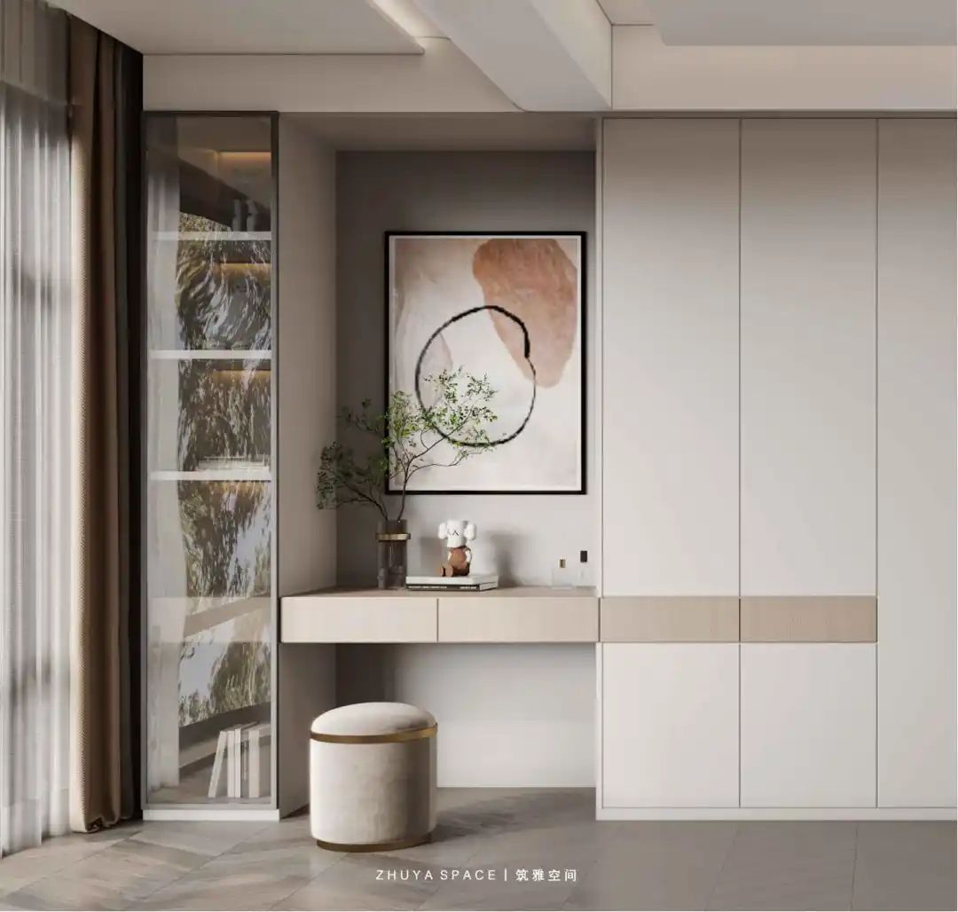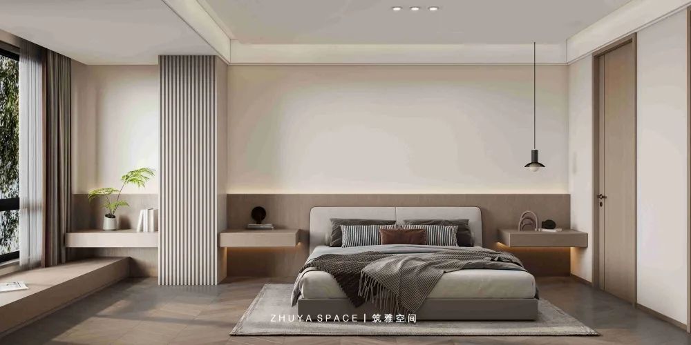 臥室延續(xù)了整體簡練的設(shè)計語言,沒有過度裝飾,溫柔色調(diào)除卻浮躁,光與空氣的鋪陳催發(fā)一種純粹明朗的舒眠氣息。