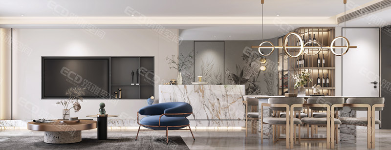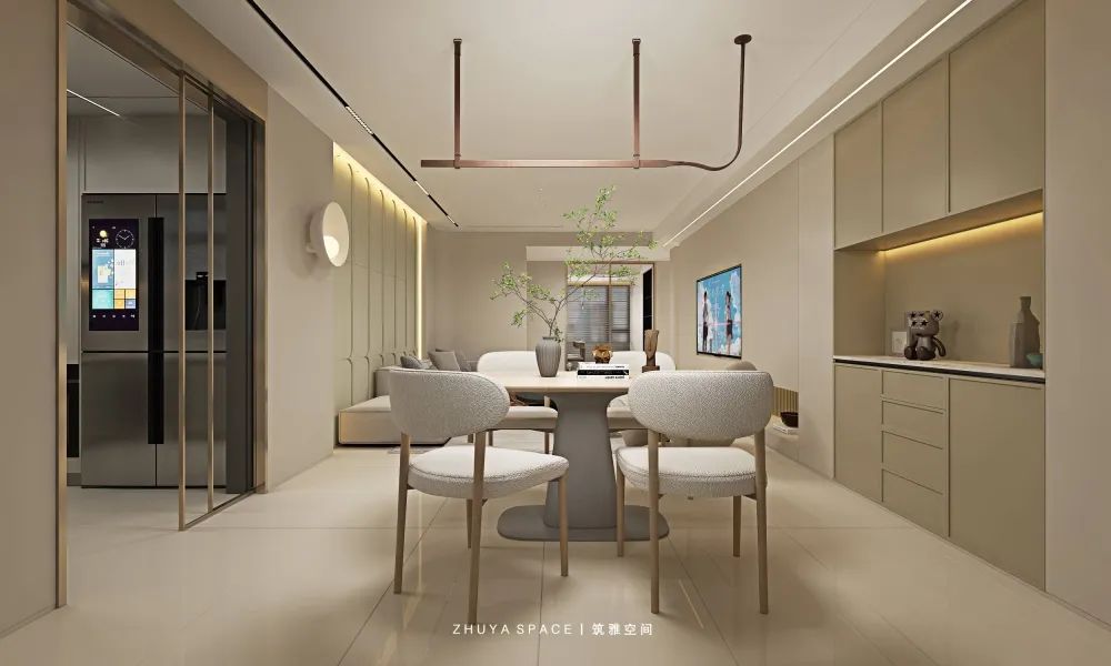 突破傳統(tǒng)餐桌設(shè)計,增強了空間的交互屬性,展現(xiàn)了居者新潮的生活態(tài)度。
