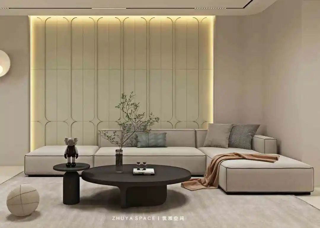 米灰色沙發(fā)與黑色茶幾相互碰撞,在沉穩(wěn)安然的意境中帶來一絲靈動。