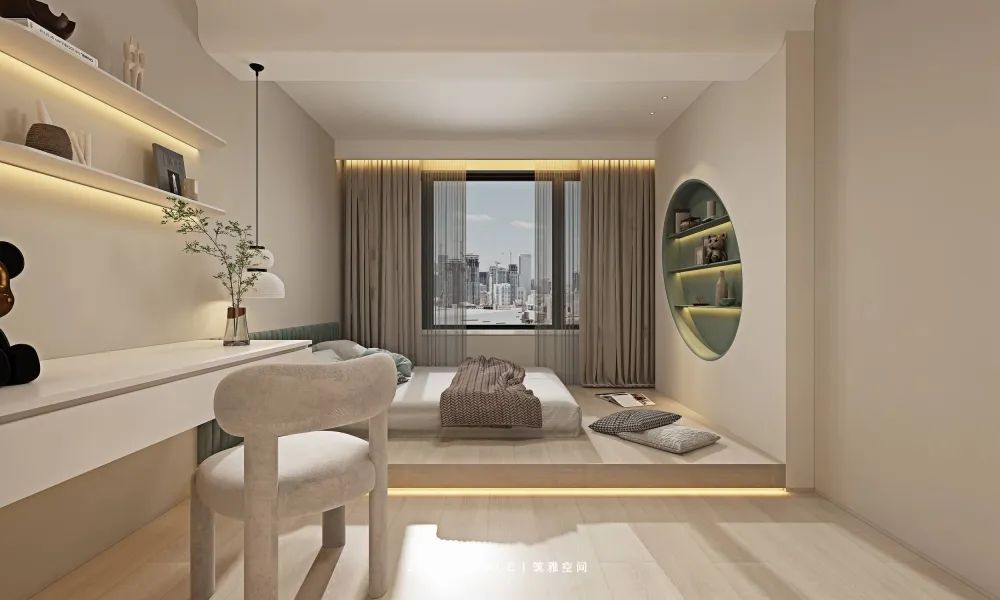 臥室延續(xù)全屋空間門板色調(diào),給人優(yōu)雅浪漫的溫馨享受,打造極具私密感的多功能睡眠空間。