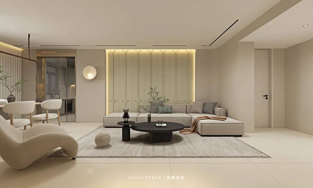客廳整體運用暖白色調(diào)一體化客廳空間設(shè)計,容納了多元功能組合,
