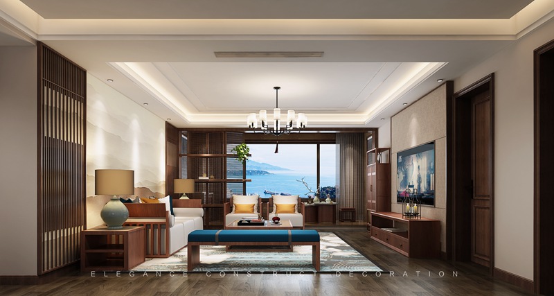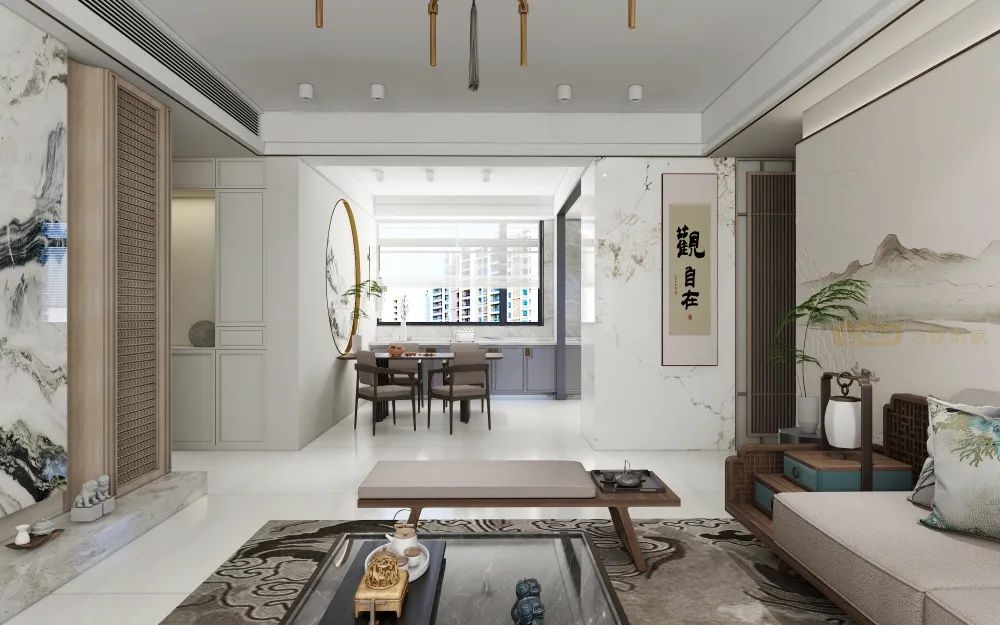 電視背景與客廳背景遙相呼應調(diào)動起空間的色彩層次,空間中式元素加入了靈動氣息。