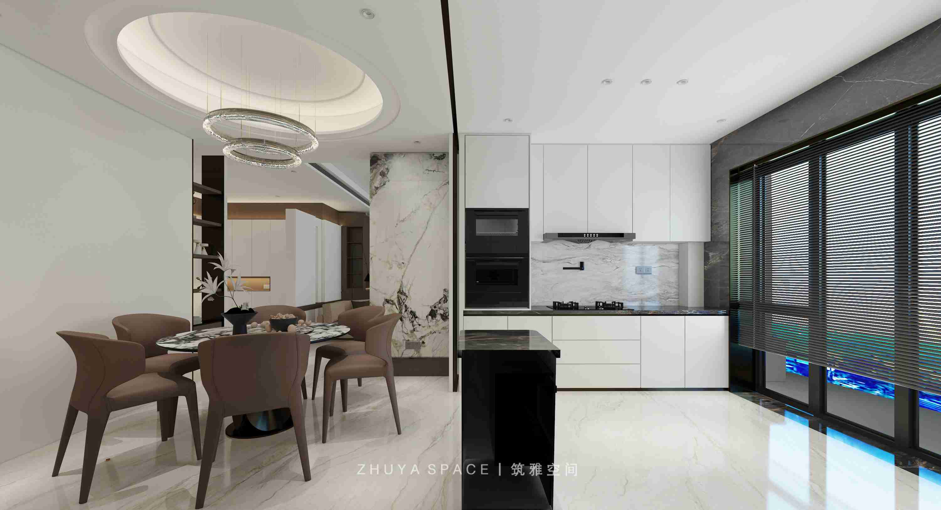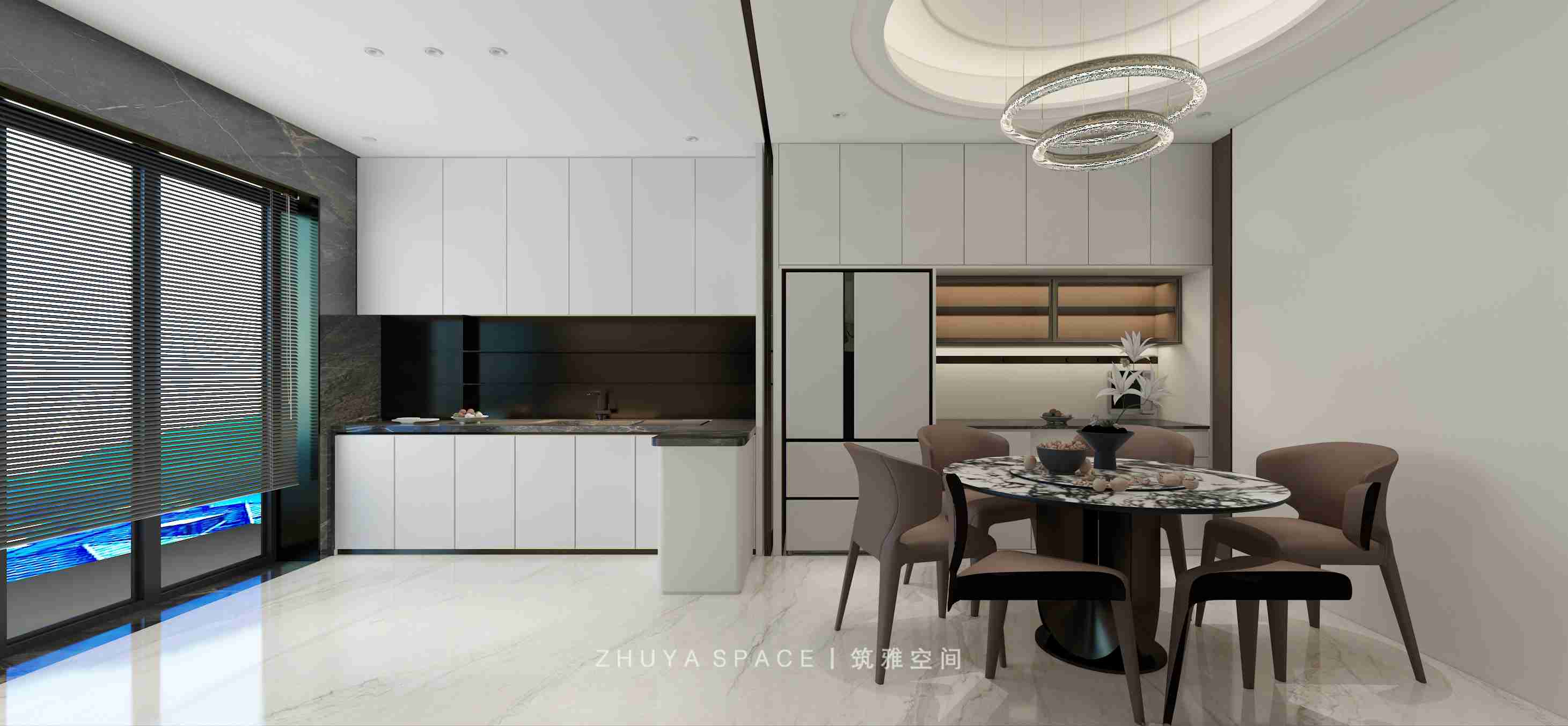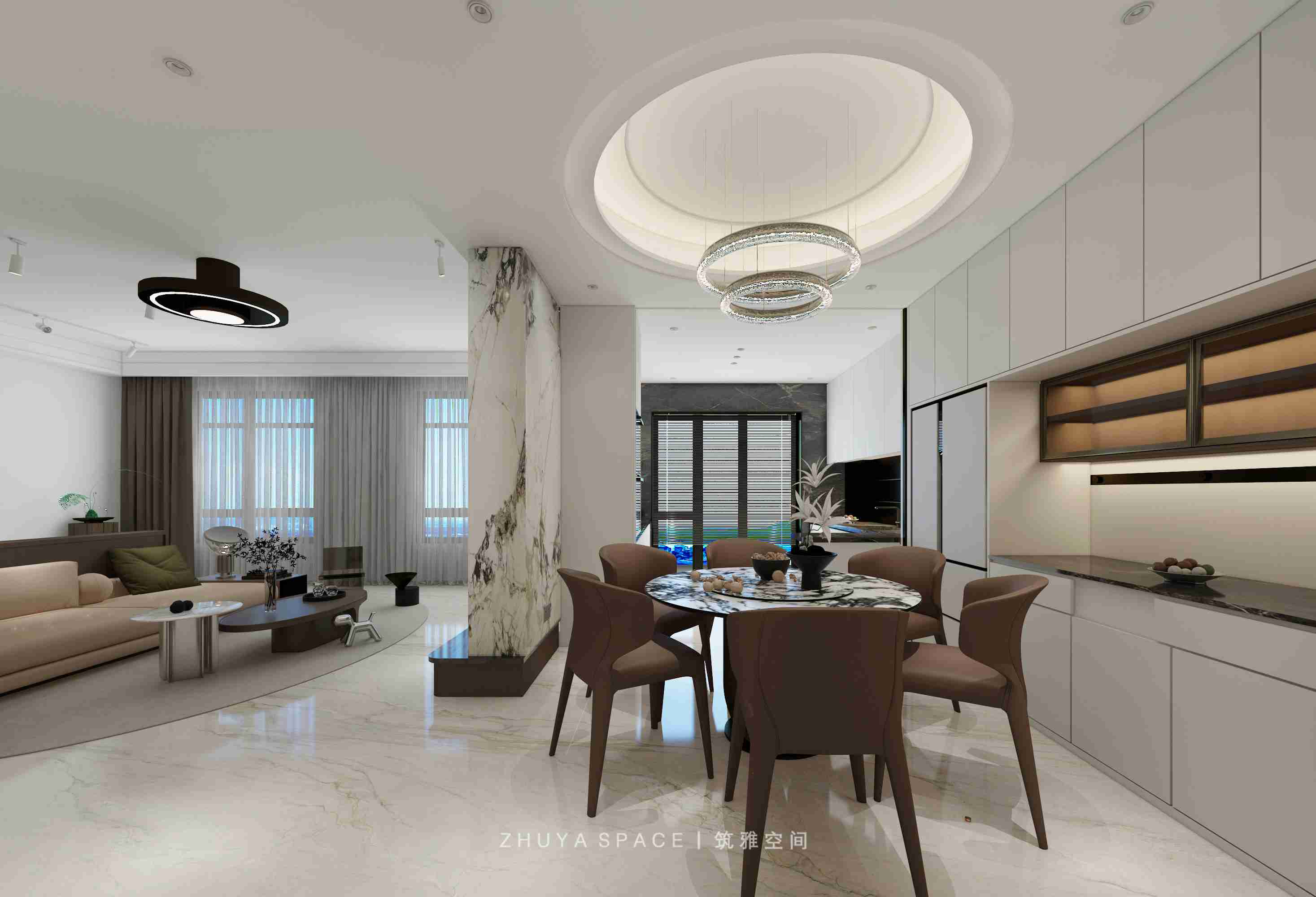 餐廳區(qū)域延續(xù)主客廳的整體風格,既能滿足功能需求,還能提高視覺美感。