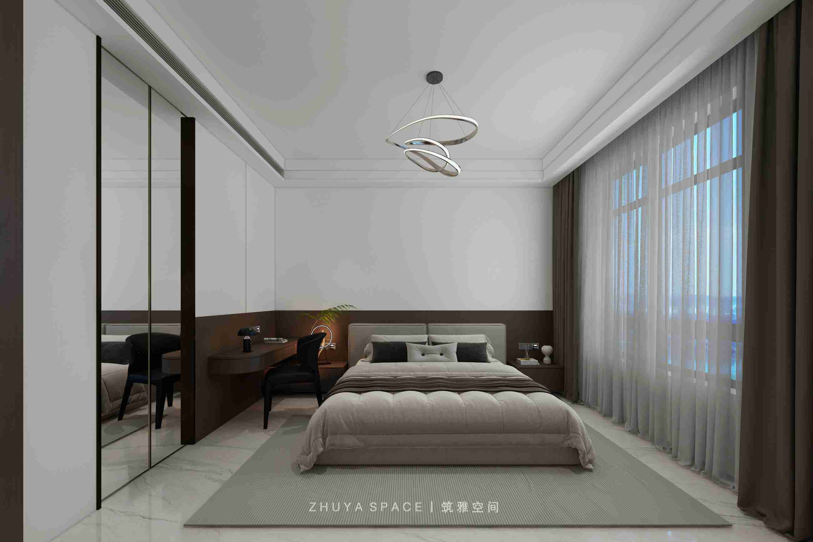 整體簡約舒適,空間開闊,我們舍棄了復雜的造型,背景墻部分則利用乳膠漆調(diào)色,簡約還耐看,營造了輕奢高級的睡眠空間。