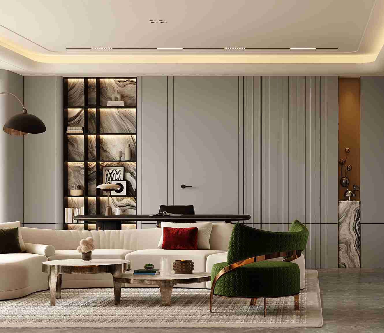 在開放的空間中,增加客廳空間的層次感與視覺豐富度,使其成為家中的一處景觀所在。